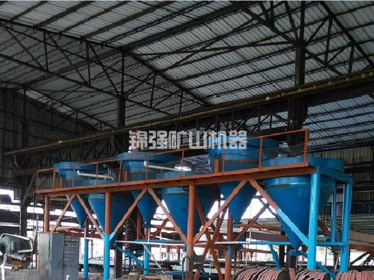 在液面中心设置给矿圆筒,圆筒底缘没入液面以下若干深度。矿浆沿切线方向向给入中心圆筒,经缓冲后由底缘流出。流出的矿浆呈放射状向周边溢流堰流出。在这一过程中,沉降速度大于液流上升分速度的粗颗粒将沉在槽内,并经底部沉砂排出。细颗粒随表层矿浆进到溢流槽内。分泥斗给矿粒度一般小于2mm。分级粒度为75或更细些。